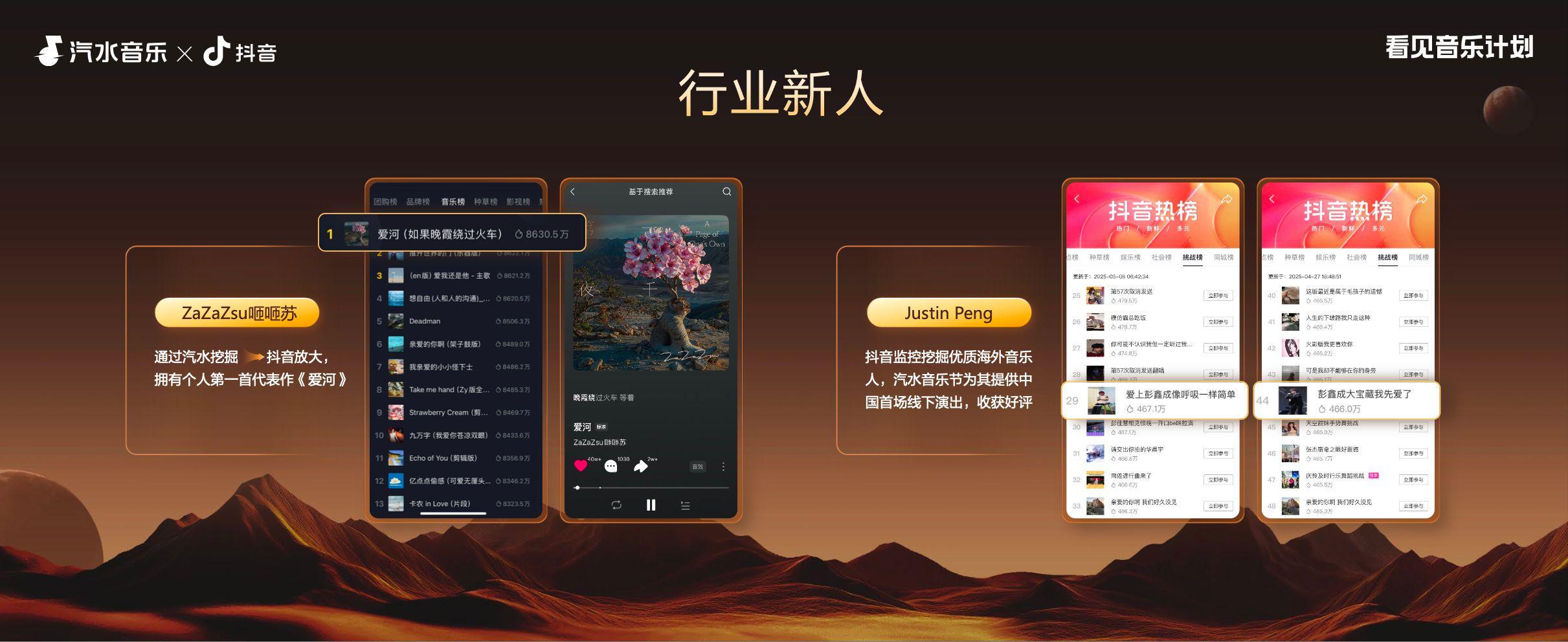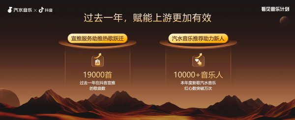 “往日一年在抖音宣推的歌曲数达19000首,本年度10000+音乐东说念主的新歌在汽水音乐红心数打破万次。”